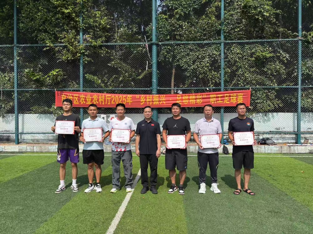 10月19日,历时一个多月的2025年广西农业农村厅“乡村振兴・足够精彩”职工足球赛,在南湖力波足球场圆满落幕。自治区农业农村厅二级巡视员李豪兵出席闭幕式,为获奖队伍及个人颁奖,最终广西农业职业技术大学斩获冠军。